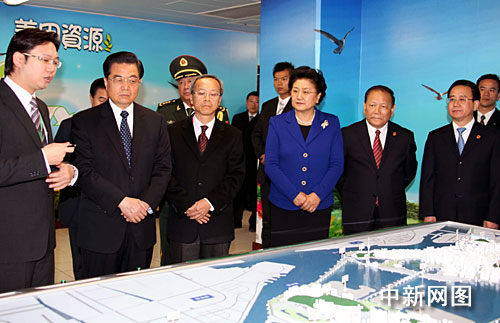 在访问澳门的紧密行程中,中国国家主席胡锦涛十九日下午来到位于氹仔北安工业区的家居弃置物处理中心。胡锦涛听取了澳门环保基建设施沙盘及展示板介绍并参观了控制室。张朔 摄