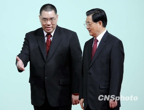 12月20日,庆祝澳门回归祖国十周年大会暨澳门特别行政区第三届政府就职典礼在澳门东亚运动会体育馆举行。澳门特区第三任行政长官崔世安宣誓就职,国家主席胡锦涛监誓。中新社发 廖攀 摄