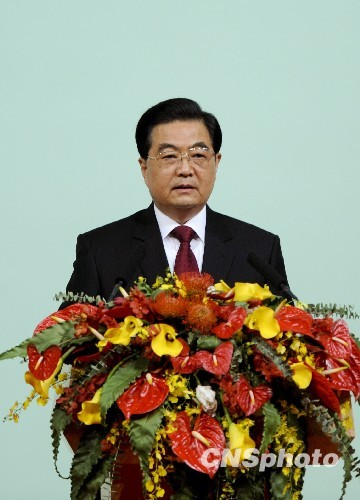 12月20日,庆祝澳门回归祖国十周年大会暨澳门特别行政区第三届政府就职典礼在澳门东亚运动会体育馆举行,国家主席胡锦涛在大会上发表重要讲话。中新社发 廖攀 摄