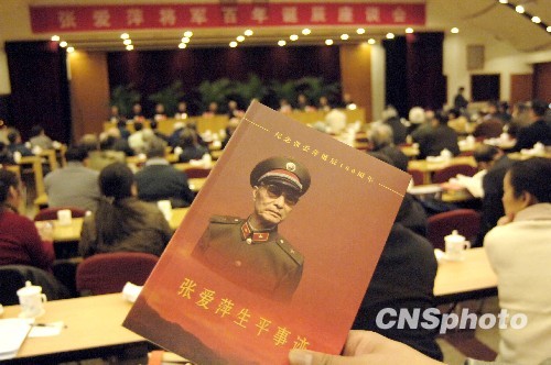 2010年1月10日上午,北京新四军暨华中抗日根据地研究会四师分会在北京万寿庄宾馆聚会座谈,隆重纪念国务院前副总理兼国防部长张爱萍将军诞辰一百周年。在京新四军、八路军与第二代及首都各界知名人士三百余人参加座谈。伍绍祖、陈昊苏等多位有关领导同志先后发言,深切缅怀张爱萍将军为中国人民解放事业,为振兴中华民族建立强大国防而建立的丰功伟绩。中新社发 徐曦弋 摄