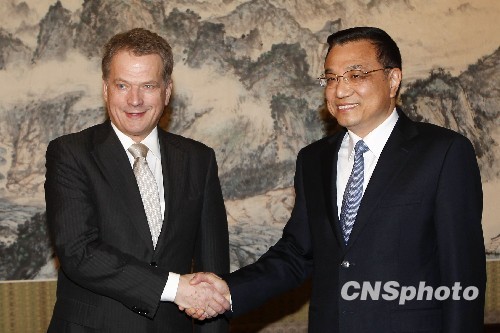 2010年3月30日,中国国务院副总理李克强在北京中南海紫光阁会见了芬兰议长尼尼斯托。中新社发 盛佳鹏 摄