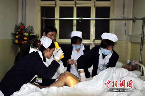 中新网4月16日电 4月16日凌晨2时10分,第四批青海玉树县地震灾区伤员抵达兰州机场。至此,兰州共接收玉树县地震灾区伤员达119名,几乎全部为重症,被分配到甘肃省人民医院、兰州大学的附属医院等5家医院治疗。目前,院方已经为伤者开展手术,全力以赴抢救治疗。