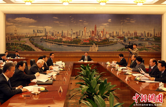 4月16日,第十一届全国人大常委会第四十二次委员长会议在北京人民大会堂举行。吴邦国委员长主持会议。中新社发 任海霞 摄