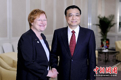 5月26日,中国国务院副总理李克强在北京中国大饭店会见了芬兰总统哈洛宁。中新社发 廖攀 摄