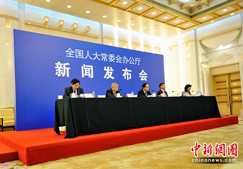 全国人大常委会办公厅6月25日(周五)下午16时在人民大会堂台湾厅举行新闻发布会,邀请有关方面负责人对十一届全国人大常委会第十五次会议审议石油天然气管道保护法草案、行政监察法修正案草案相关情况及这两部法律的有关问题回答记者提问。金硕 摄