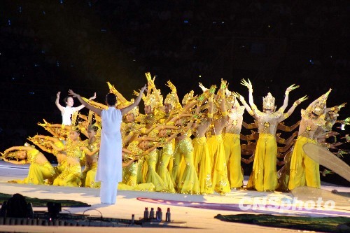 9月5日晚,由中国残疾人艺术团表演的经典舞蹈《千手观音》,亮相第21届(台北)听障奥林匹克运动会开幕典礼,邰丽华领衔的63名听障演员的精彩演出,获得2万多名台湾观众的热烈掌声。中新社发 董会峰 摄