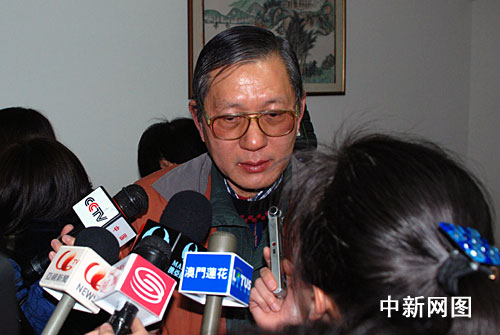 十二月十九日下午,国家主席胡锦涛走访了家住澳门凼仔伯乐花园的梁植森一家。图为胡锦涛主席离开后,梁植森接受媒体访问。毕永光 摄