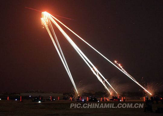 驻闽某防空团严格按新大纲要求,全员额、全要素、全装备、全过程开展夜间课目训练,提高了部队全天候作战能力。图为10月19日晚,他们在夜间进行实弹射击。彭贵州 摄