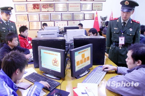 2009年11月2日,在山东济南市历下区人武部,报名应征的适龄青年接受心理检测。当天,济南市2009年冬季征兵工作全面展开。中新社发 龚辉 摄