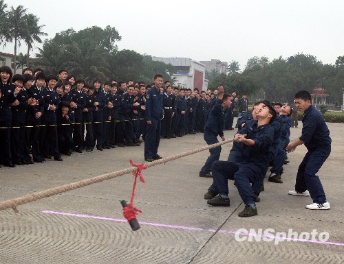 1月3日,驻琼海军某部组织开展了拔河、乒乓球、足球、健身跑等系列健身活动,喜迎新年到来。中新社发 邢利民 摄