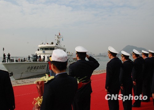 担任中国首次省级海洋执法维权巡航任务的中国海监九0一二船,一月十三日返航至深圳蛇口渔港码头。此次巡航区域包括粤西毗连海域与专属经济区、琼州海峡、北部湾海域,历时十五天,航程达一千二百海里,未发现侵犯中国海洋权益、损害海洋环境与资源等违法行为。中新社发 索有为 摄