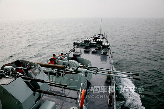 连日来,受冷暖气流影响,南海某海域雨雾天气变化无常,能见度差,南海舰队某水警区抓住这一有利时机,组织舰艇在复杂气象下练指挥、练协同,强化官兵应急处置能力。图为1月19日,水警区官兵在雾海进行火炮攻防演练。张明生 摄