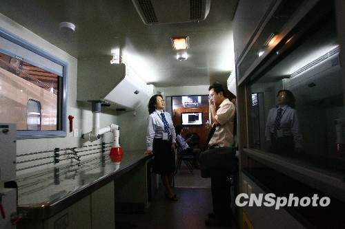 2009年第四届中国国际军民两用技术展览会9月2日至4日在北京中国国际展览中心举行。一台“文物出土现场保护实验室”在展会上亮相。这是中国第一台考古移动实验室,由50铃二类底盘改造而成。这也是军用方舱用于科研和民用的范例。图为工作人员在为参观者介绍这台考古移动实验室的功能。中新社发 苏丹 摄