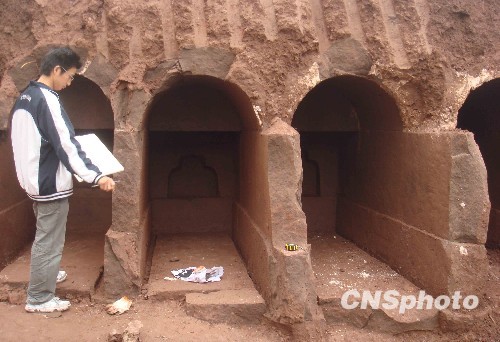 11月8日,四川省广安市城南金源路友谊中学初中部附近一工地发现多座联体古墓,墓内文物保存完好。据在场考古专家初步判定,此次发现的古墓应为元明时期家族墓群。中新社发 杜修战 摄