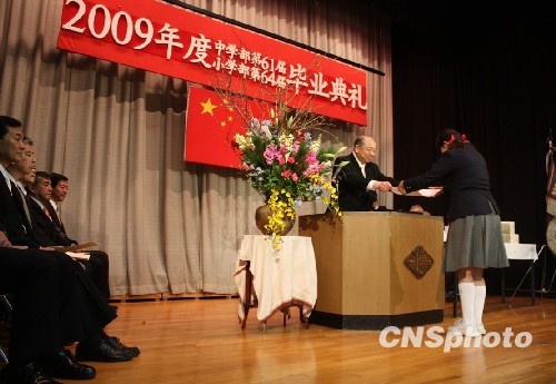 3月10日,即将迁入新校址的日本横滨山手中华学校在该校旧校舍礼堂举办2009年度小学部第64届、中学部第61届毕业典礼。