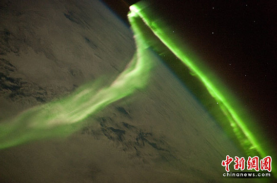 5月29日,当国际空间站经过印度洋上空时,国际空间站“远征23队”宇航员捕捉到了太空中美丽的蛇形南极光画面。