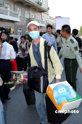 乘坐5月6日南航包机从墨西哥返上海的98名中国公民和1名随机公共卫生专家,在接受了为期7天的集中留验观察后,于5月13日下午有95人解禁,1人体温异常被继续留验,另有3人在隔离期间曾与体温异常者有接触,也被要求暂留宾馆继续留验。相关检测结果还需等待。中新社发 张亨伟 摄