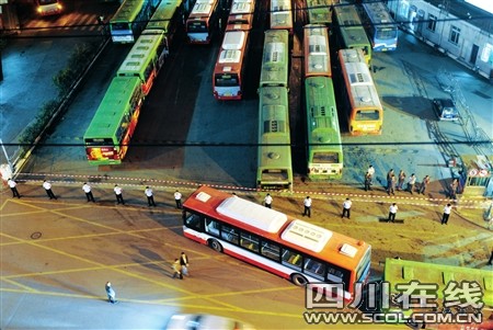 昨天晚上10时许,火车北站东广场停车场,5辆已经收车的公交车停靠在路边,因为它们被禁止进入停车场。在停车场入口处的醒目位置,张贴着一张《关于九州公司要求收回火车北站东广场场地的函》的告示。告示称,由于该场地在2008年1月25日已过户给四川九州宾馆有限责任公司,并在相关部门完成了产权的认定,且原合同早已期满,因此九州公司有权收回火车北站东广场的使用权,并要求公交公司从5月15日起从停车场撤离。这意味着,130辆公交车将无家可归。
