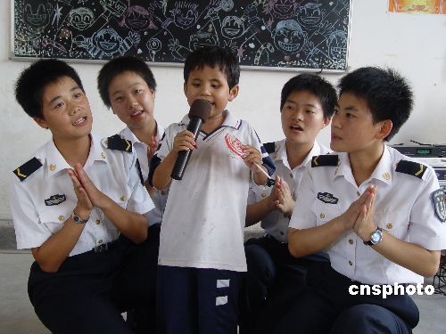 5月25日,“六一”国际儿童节来临之际,驻琼海军某部女兵中队的官兵们,带着学习用品和水果来到海南省特殊教育学校看望残疾儿童。在学校里和这些特殊儿童唱歌、跳舞、做游戏,欢庆“六一”儿童节。中新社发 邢利民 摄
