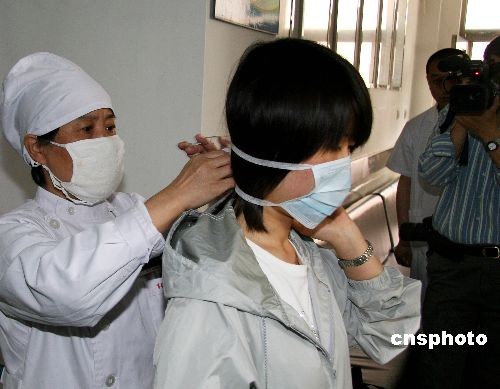针对中国内地相继出现输入性甲型H1N1流感确诊病例,北京中医院5月26日上午组织医生护士进行防控甲型H1N1流感实战演练,模拟一名加拿大留学生患者在该院就诊时出现甲型H1N1流感状况。演练中,对在诊治过程中容易忽视的某些环节进行了完善。中新社发 刘震 摄