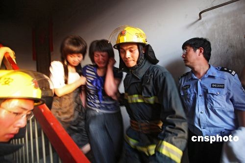 5月30日18时40分许,河南省滑县道口镇一小区单元户家中不慎失火,母亲和一双儿女被困。接到报警后,当地有关部门第一时间赶到现场,消防武警、公安和卫生部门人员积极施救。由于组织有力、措施得当,被困的母子三人被成功救出,没有生命危险。中新社发 王子瑞 摄