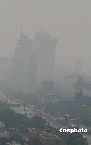 5月31日,千年古城扬州笼罩在烟雾下,据扬州环境监测中心数字显示,30日中午至31日上午10时,扬州市区空气质量为轻度污染。去年秸秆焚烧影响空气质量达18天。中新社发 崔佳明 摄