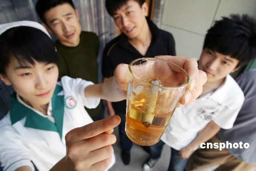 5月31日,在山东省潍坊市区后门街社区内,社区卫生室的医护人员正在通过水分解香烟所含的尼古丁物质向居民们讲解吸烟的危害。当日是“世界无烟日”,这所社区开展了戒烟宣传活动,旨在提高社区居民对吸烟危害健康的认识,以帮助居民们作出健康的选择,从而营造一个健康、清洁、无烟的社会环境。中新社发 张驰 摄