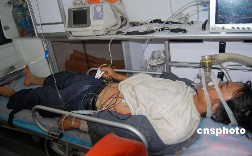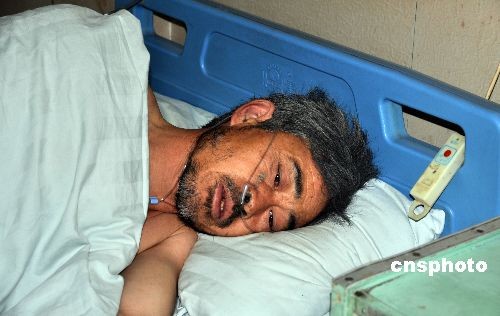 5月31日,伤者正在医院接受治疗。30日上午10时55分,重庆市綦江县境内的重庆松藻矿务局同华煤矿发生特大瓦斯突出事故。当时在井下作业的131人中,30名工人遇难,77人受伤。截至31日上午,遇难者遗体认领工作仍未开始。中新社发 郭晋嘉 摄