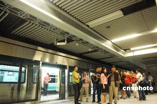 5月31日,北京地铁4号线开始车辆全线贯通测试,为9月底实现开通运营即达到最小间隔3分钟做好准备。地铁4号线南起公益西桥站,北至安河桥北站,全长约28公里,是继地铁5号线后又一条贯穿京城南北的交通大动脉。中新社发 远舟 摄