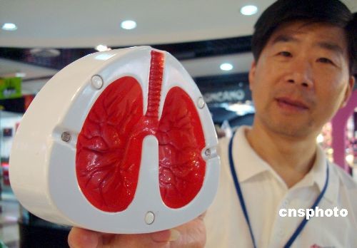 2009年5月31日是第22个世界无烟日,苏州观前街一家商店推出的一款肺部造型的烟灰缸吸引了许多消费者的目光,这种富有创意的烟灰缸能发出一阵阵警示烟民的咳嗽声。中新社发 王建康 摄