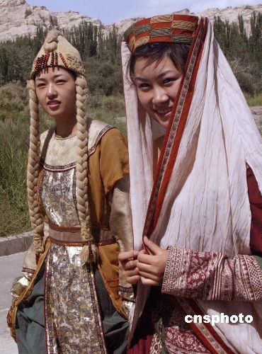 日前,在新疆哈密举行的第六届哈密瓜节发布会上主办方宣布,2009-2010国际旅游小姐中国新疆赛区总决赛将于7月下旬在哈密市举行。是次大赛将时尚文化理念融于底蕴深厚的瓜乡文化,展现独具瓜乡特色的民俗风情、人文历史、自然风光。届时,哈密市区花车巡游、走进瓜节赛瓜会、瓜节走进瓜节开幕式、走进东天山风景名胜区、走进哈密王府、走进五堡魔鬼城、走进哈密重点工程、走进哈密福利院等赛事主题系列活动亦相继展开。图为新疆佳丽身穿民族服饰展示风采。中新社发 钱兴强 摄