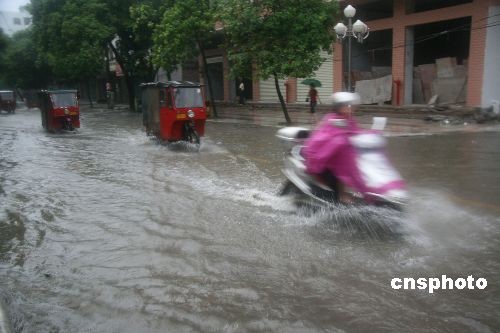6月9日至10日,广西罗城仫佬族自治县全县境内普遍连降暴雨,造成多个乡镇山洪暴发,沿江河堤洪水迅猛上涨,城区街道积水一片,给民众出行带来诸多不便。中新社发 吴耀荣 摄
