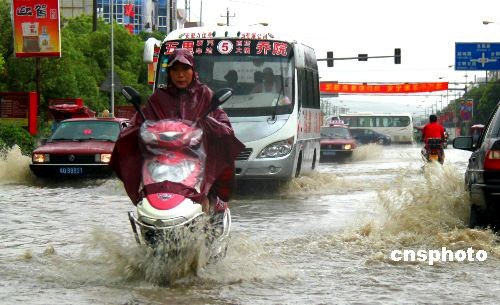 6月21日下午,安徽省部分地区遭遇特大暴雨持续袭击,造成一些城市市区低洼地段和部分立交桥下严重积水,一些市区电力系统遭到破坏,给市民出行带来不便。