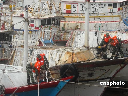 今年第3号热带风暴“莲花”近日在福建晋江登陆,福建沿海各地普降大雨。福州市边防支队迅速启动《抗台防汛工作预案》,深入辖区港澳口、码头、海面以及低洼地带,大力开展防台宣传、海上大清查、动员撤离群众、加固民房、渔船和渔排等各项防台工作。中新社发 金云峰 摄