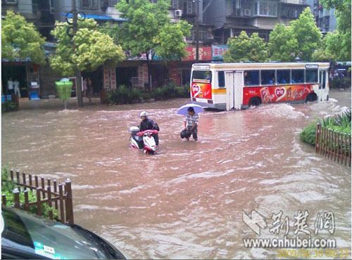 从6月28日入梅后,武汉市遭到持续暴雨袭击,6月29日8时至17时,全市降水41毫米。城区排水系统泄水能力因此遭遇严峻考验。据了解,虽然29日降雨期间,武汉各大型泵站抽排水量已达370.9万立方米,城区多处仍严重积水,道路堵塞严重。