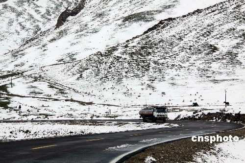 6月30日晚至7月1日,新疆巴州巴音布鲁克山区普降大雪。巴州首府——库尔勒市区降水量达8.7毫米,据悉,这是库尔勒地区今年以来最大的一场降水,有效地缓解了当前旱情。中新社发 焦银辉 摄