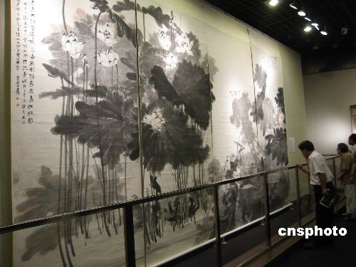7月3日,《南张北溥——台北历史博物馆藏张大千、溥心畬书画作品展》在辽宁省博物馆揭幕。这是台北历史博物馆首次以“南张北溥”为视角在大陆举办的展览。该展览由辽宁省博物馆、台北历史博物馆、中华海峡两岸文化资产交流促进会共同主办,展期1个月,展览共遴选出台北历史博物馆所典藏张大千、溥心畬作品及部分台湾收藏家藏品合计140件(组),内容涵括二位大师于山水、人物、花卉及书法等多种题材的作品。中新社发 沈殿成 摄