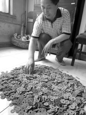 今年6月初,李忠兴驾驶着拖拉机在自家的田地内耕田,拖拉机突然被硬物卡了一下。李忠兴下车检查,发现犁下有铁块。于是李忠兴拿起一把铁锹挖埋在地下硬物,渐渐地,一个直径约60厘米的铁锅出现在面前,这个铁锅有6个“耳朵”。扒开锅上的泥土,里边是满满一锅铜钱。因为年代久远,铜钱已经锈迹斑斑。