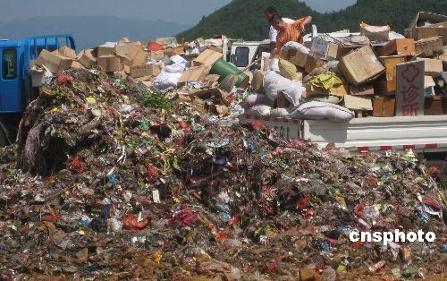 7月14日,浙江义乌在塔山垃圾填埋场集中填埋从无证行医诊所没收的30余吨药品。据了解,从2005年3月份国务院办公厅下发《关于开展打击商业欺诈专项行动的通知》和卫生部等七部门联合下发《打击非法行医专项行动方案》以来,义乌市共取缔无证行医1400余家,没收药品60余吨,医疗器械3000余件,价值总计人民币500万余元。中新社发 朱丽珍 摄