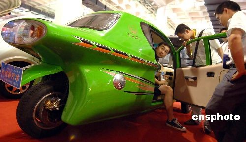 7月14日,在北京中国国际展览中心举办的2009北京国际电动车清洁能源车暨休闲运动车展览会上,各式各样的电动客车、电动小轿车、电动公交车、电动旅游观光车、电动摩托车展现风采。中新社发 邹宪 摄