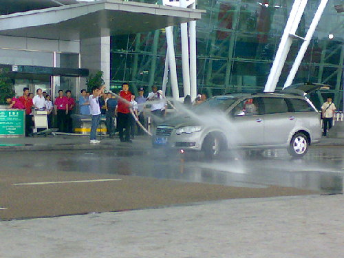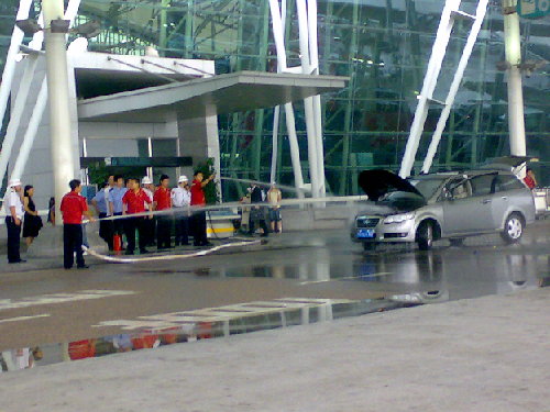 今早(7月20日)7时许,在广州白云机场送机大厅前,一辆轿车突然起火,冒出浓烟(见下图)。据网友报料,现场交通一度拥堵,机场管理人员迅速灭火,并疏散了附近车辆及人员。至7时26分,火势被完全控制。