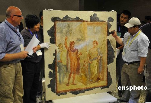 7月23日下午,由国家文物局和意大利文化遗产与活动部共同主办的《秦汉——罗马文明展》在中华世纪坛世界艺术馆举行文物开箱检验程度,精美绝仑的珍惜文物令现场人员先睹为快、拍手叫绝。据悉,此次展出共计三百件(组)文物,秦汉和罗马时期的各占一半。中新社发 潘旭临 摄