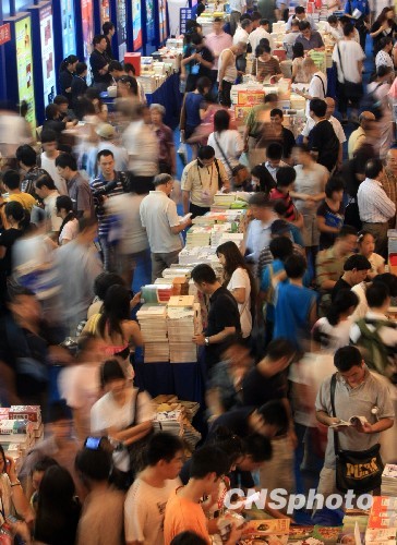 8月13日,2009上海书展在上海展览中心开幕,10余万种图书在本次书展上“书香”四溢,吸引了众多读者前来“书海淘金”。中新社发 汤彦俊 摄