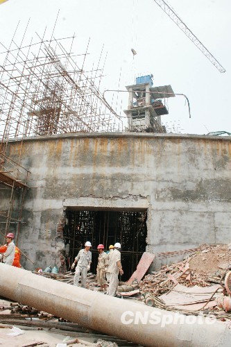8月17日晚,重庆市铜梁县金江水泥厂发生一起脚手架垮塌事故。截止18日9时40分,该事故已造成6名施工工人死亡,1人失踪。17日晚21时50分许,重庆金江水泥有限公司二期工程熟料库顶板加固工程在施工中脚手架垮塌,事发时施工现场有24人正在作业。24人中有6人死亡,1人失踪,7人受伤。图为重庆金江水泥有限公司二期工程熟料库顶板加固工程施工现场。中新社发 杜远 摄
