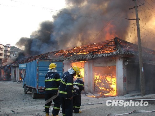 9月2日下午,广西百色市田垌百胜交易市场发生严重火灾,导致15间店铺被烧,所幸未造成人员伤亡。中新社发 韦崇敏 摄