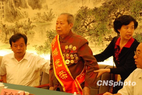 9月29日,广西壮族自治区总工会在桂林召开授予王全禄“时代领跑者——中华人民共和国成立六十周年最具影响的劳动模范”金质奖章颁奖仪式,年逾90岁的王全禄成为广西唯一获称新中国最具影响的劳动模范。王全禄1956年获得全国劳动模范,当年王全禄带领本厂的职工用土办法设计制造和仿造出150多台木材加工机械,完成250多项技术革新,使所在厂木材加工基本实现了机械化和半机械化,被誉为“活鲁班”。王全禄曾先后5次获得全国劳动模范称号,9次到北京出席全国群英会、全国科学大会、全国劳动模范大会和参加“五一”及国庆观礼活动。中新社发 周利朔 摄