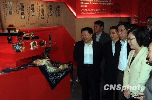 10月13日,上海世博会开幕倒计时200天,“走进世博会”——中国2010年上海世博会历史回顾展览开幕。一批包括丝绸、茅台酒、硖石彩灯等中国“传世珍宝”,因在早期世博会上摘金夺银,让许多参观者引以为豪。中新社发 潘索菲 摄