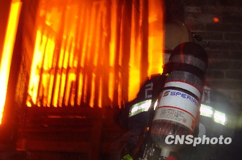 10月19日凌晨,位于福建宁德古田城关新丰村的一处民房突发大火,导致房顶坍塌,并有人员被围困。古田消防大队接到报警后,立即赶往现场,动用三支水枪灭火,并及时救出被围困人员。目前,火灾原因和财产损失正在进一步调查之中。中新社发 陈强 摄