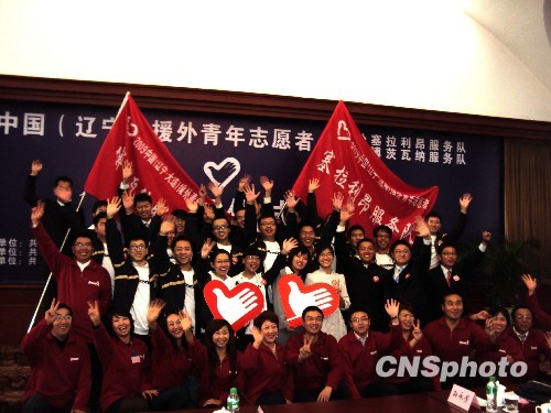 10月28日,2009中国(辽宁)援外青年志愿者赴塞拉利昂服务队出征仪式在辽宁省沈阳市举行,14名志愿者将于29日离开沈阳前往非洲。他们也是中国首次赴塞拉利昂的志愿者。与此同时举行的还有赴博茨瓦纳的志愿者出征仪式。来自辽宁省大连市的18名青年志愿者将于11月2日启程前往非洲。中新社发 汤龙 摄