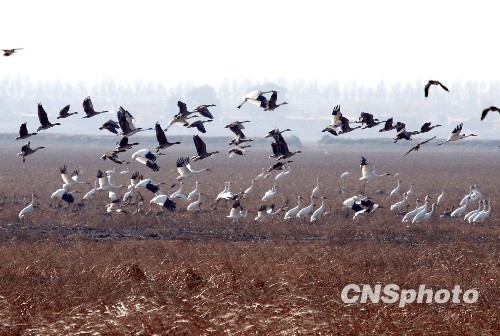 10月29日,随着迁徙季节的来临,辽宁省卧龙湖自然保护区再次迎来大批南迁候鸟。卧龙湖是辽宁省最大的天然淡水湖,总面积112平方公里,具有广阔的水面,各种水生动植物为鸟类提供了充足的食物。优越的栖息繁殖场所,吸引了大量候鸟和留鸟,是亚洲东部鸟类迁移的必经之地。有白鹤等国家一级保护鸟类6种,国家二级保护鸟类23种。中新社发 黄金昆 摄